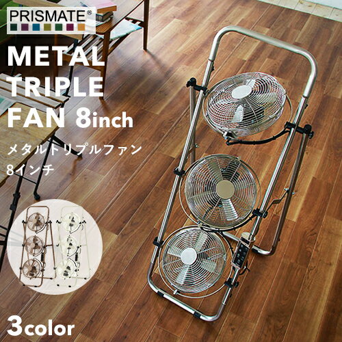 【着後レビューで選べる特典】PRISMATE 「メタルトリプルファン 8インチ」PR-F009 扇風機 3連 リモコン付き ファン メタリック ブロンズ シルバー アイボリー アロマパッド付き アンティーク レトロ シンプル おしゃれ デザイン家電 プリズメイト